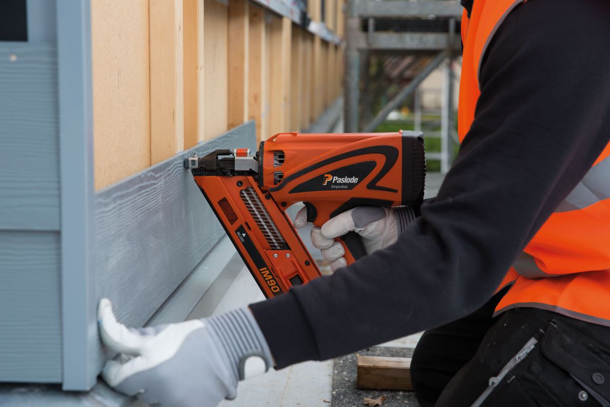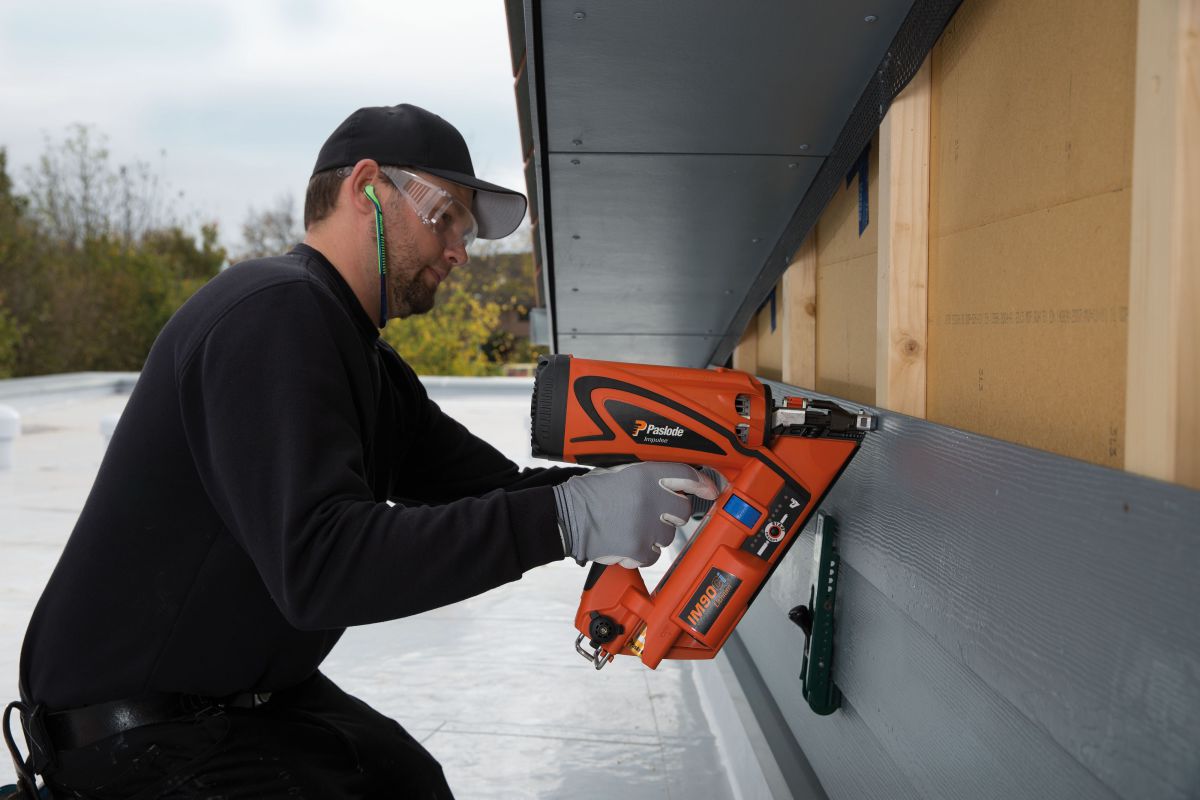 Deski elewacyjne HardiePlank można łatwo montować bez wstępnego nawiercania przy użyciu gwoździarek gazowych